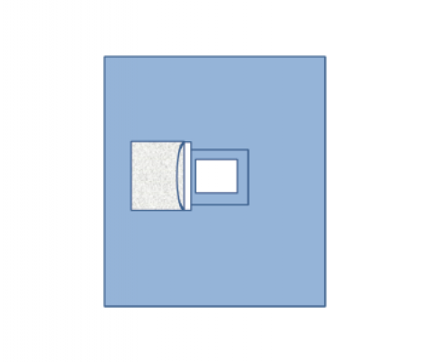 Câmpuri operatorii pentru chirurgia globului ocular (câmp operator de unica folosință, steril, dimensiune 102x122 cm (+/- 2 cm). Material SMS, cu punga de colectare a fluidelor, cu apertura (suprafata de lucru) cu dimensiunea 6x4 cm, acoperita integral cu pelicula adezivă.